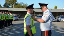 Министр ВД по КБР Игорь Ромашкин вручил медали «За отвагу» инспекторам дорожно-патрульной службы ГИБДД УМВД России по Нальчику Зауру Мизову и Тимуру Джаватханову.