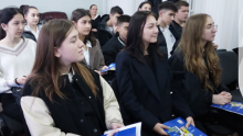 Заместитель руководителя клиентской службы по г. Нальчику Карина Панжокова в ходе презентации учебного пособия «Всё о будущей пенсии: для учёбы и жизни» рассказала школьникам о его содержании.