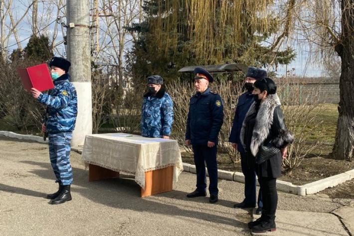 Присягнули закону![]() В ИК-4 УФСИН России по КБР состоялось торжественное принятие присяги. Молодые сотрудники исправительной колонии, прошедшие стажировку в учреждении, были приведены к присяге сотрудника уголовно-исполнительной системы. Церемония прошла у памятника погибшим при исполнении служебного долга сотрудникам ведомства, расположенного на территории учреждения, сообщает пресс-служба УФСИН России по КБР.
