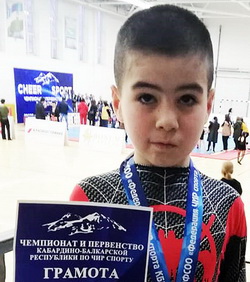 Чир-спорт – отдельный самостоятельный вид спорта, включающий в себя различные элементы гимнастики и акробатики. Это направление спорта в настоящее время набирает популярность в нашей стране. Астемира тренирует Ислам Бжикшиев.