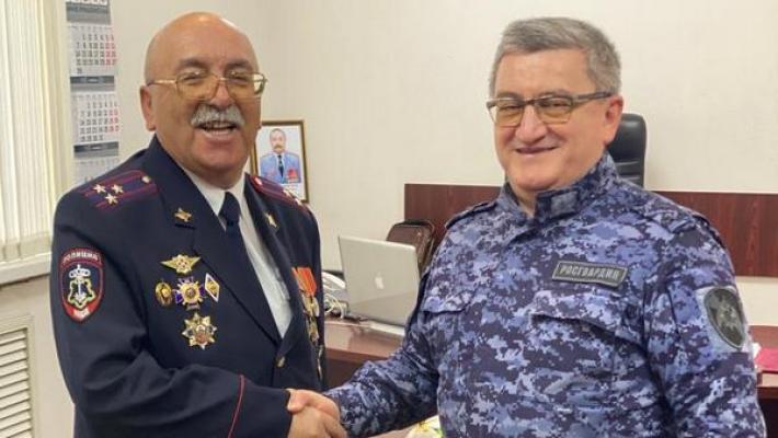 Сотрудники управления вневедомственной охраны по Нальчику поздравили председателя регионального Совета ветеранов Росгвардии, полковника полиции в отставке Руслана Хужокова с Днём ветерана органов внутренних дел и внутренних войск.
