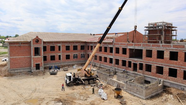 Уже завершено строительство двух этажей здания, продолжается монтаж кровли. Рабочие приступили к внутренней отделке и проведению инженерных коммуникаций.
