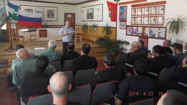 Сотрудники воспитательного отдела исправительной колонии строгого режима провели с осуждёнными занятие, приуроченное к Дню государственного флага России.