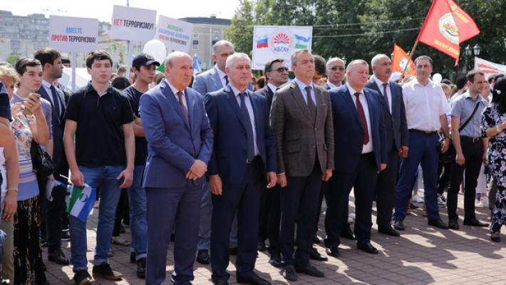 Общереспубликанский митинг, посвящённый Дню солидарности в борьбе с терроризмом, прошёл на площади 400-летия в Нальчике. В нём приняли участие представители Парламента, Правительства, министерств, ведомств, региональных политических партий, общественных организаций и советов, студенты, школьники.