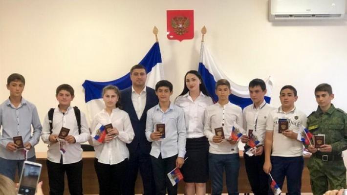 Начальник отделения по вопросам миграции отдела Мурадин Халилов поздравил ребят, отметив важность события.