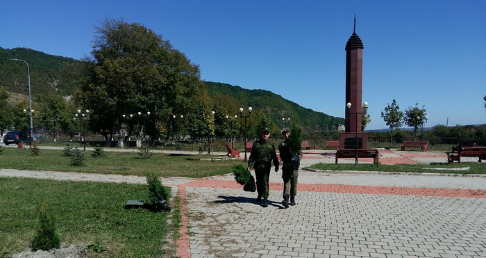 Вместе с воспитанниками кадетской школы-интерната №2 Бабугента Асланом Бекуловым, Русланом Хашевым и Ахматом Анаевым они высадили молодые туи возле мемориала Славы в месте захоронения бойцов и командиров 2-й гвардейской стрелковой дивизии, геройски павших в бою за Кашхатау 28-31 октября 1942 года, сообщили в пресс-службе МВД по КБР.
