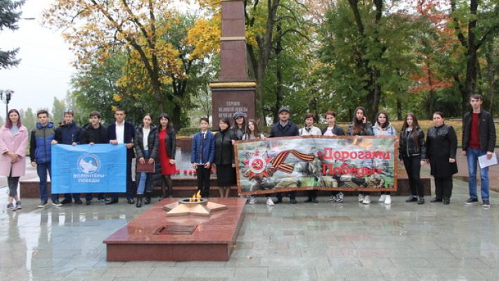 Для вручения грамот и памятных подарков ребят пригласили принять участие в молодёжном патриотическом проекте «Блог-тур «Дорогами Победы», который в этот день начался у мемориала «Вечный огонь славы» и прошёл по памятным местам города воинской славы Нальчика.
