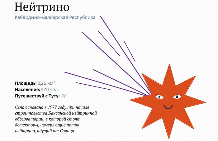 В десятку претендентов попал наш посёлок Нейтрино. Радует, что на странице проекта размещают и истории происхождения всех названий. Среди составителей списка претендентов знатоков естественнонаучных предметов явно не оказалось, но у всех весельчаков появится возможность освежить свои познания в физике и проникнуться гордостью за отечественную науку.