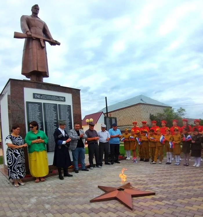 – Мы преклоняемся перед героями, сражавшимися с врагом на фронте, ковавшими Великую Победу в заводских цехах, умершими от зверств фашистов и от голода. Перед всеми, кто выстоял и приблизил май сорок пятого. Сегодняшнее поколение военнослужащих, которые сражаются с нацизмом на Украине, и наша сплочённость говорят о том, что наша страна, её народ верны памяти о великом подвиге предков. Низкий поклон и слова огромной благодарности нашим уважаемым ветеранам, фронтовикам. Вечная память погибшим героям, – сказал глава администрации селения Аслан Кунижев.