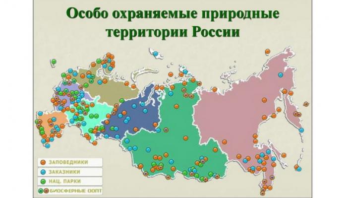 К особо охраняемым территориям относятся природные заповедники, национальные парки, заказники, ботанические сады. Некоторые ООПТ принадлежат к объектам всемирного природного наследия. На территории России находится одиннадцать таких объектов. В их состав входят 13 заповедников, семь национальных парков, три федеральных заказника, несколько памятников природы и буферные зоны заповедников. Среди уникальных природных объектов России – озеро Байкал, вулканы Камчатки, Золотые горы Алтая, плато Путорана и другие памятники природы.