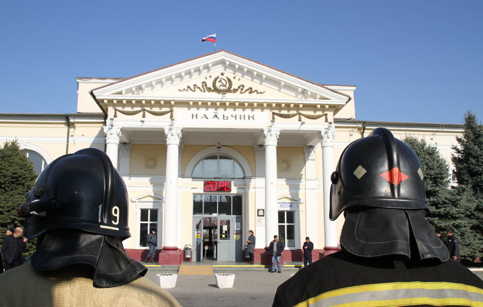Пожарно-тактические учения прошли на железнодорожном вокзале в Нальчике – отрабатывали алгоритм тушения пожара на объекте с массовым пребыванием людей.