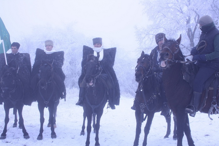 Ни туман, ни холодный пронизывающий ветер, ни бездорожье не смогли остановить участников перехода. К месту сбора за постом ДПС в селении Дыгулыбгей съехались более ста всадников и более пятидесяти внедорожников. Оттуда колонна выдвинулась в направлении высоты «910».