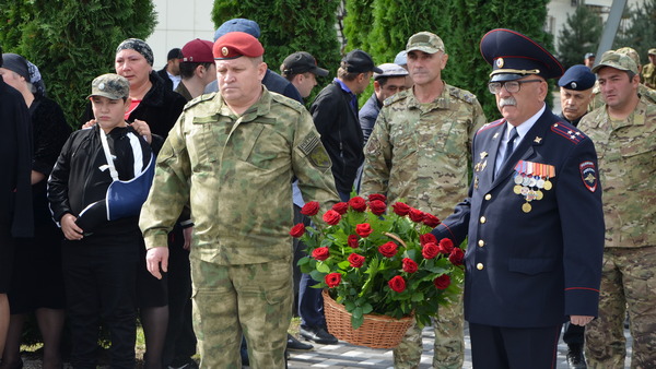 Почётное право открыть мемориал предоставили родственникам погибших и ветеранам службы. Участники церемонии возложили цветы к мемориалу и почтили минутой молчания память погибших бойцов.
