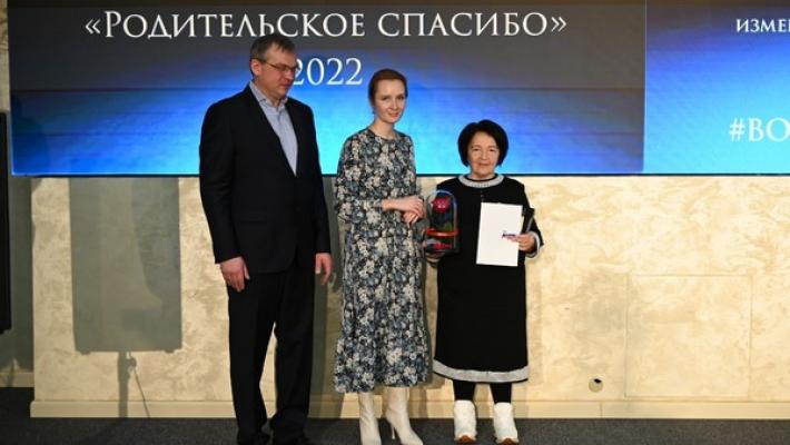 Общероссийская премия «Родительское спасибо» учреждена Всероссийской организацией родителей детей-инвалидов в 2019 году. С её помощью родители благодарят людей, которые внесли существенный вклад в построение системы помощи, реализации успешных практик и деятельности в сфере повышения качества жизни детей и взрослых с ОВЗ и инвалидностью и их семей. В 2022 году региональные конкурсы премии состоялись в 46 регионах России. Среди её лауреатов в различных номинациях были награждены педагоги, тренеры, врачи, члены законодательных и исполнительных органов власти, губернаторы регионов РФ и руководители региональных министерств и ведомств, представители благотворительных организаций и НКО. Из них выдвинуты претенденты на соискание премии по 10 номинациям.