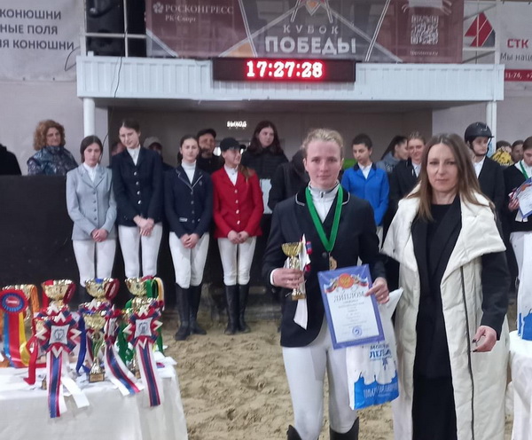 – На соревнованиях лошади переживают так же, как и люди, чувствуют настроение наездника, его неуверенность или, наоборот, стремление добиться цели, – рассказала Настя. – Адмирал – мерин англо-кабардинской породы, удивительный конь со сложным характером, мало кому удаётся найти с ним общий язык. На прошлых соревнованиях мне не удалось это сделать, а сейчас всё прошло хорошо, я была спокойна, и конь тоже. На тренировках и во время выступлений Адмирал оправдывает своё имя, но иногда, как капризный ребёнок, принимается выпрашивать вкусняшки. В его характере сочетаются противоположные качества: то бывает упрямым, настойчивым, порывистым, то вдруг становится ласковым, спокойным или даже пугливым. Например, он очень боится вертолётов, а так как конноспортивная школа находится рядом с аэропортом, то при характерных звуках начинает крутиться подобно лопастям этой машины. К соревнованиям мы готовились долго, было много тренировок, переживаний и неудач, но я сумела взять себя в руки, и результат не заставил себя ждать: второе место по выездке и третье по конкуру. В этом году на соревнование приехало много соперников высокого уровня, и я рада, что мне удалось попасть в тройку лидеров. Отмечу, что первое место по выездке заняла моя соратница по спортивному клубу, яркая и перспективная спортсменка Салима Арамисова. Однако останавливаться на достигнутом нельзя, впереди нас ждёт большой труд, нужно идти дальше. На самом деле моё появление в этой школе удивительно, так как изначально мама мечтала, чтобы я поступила в художественную школу. Так и случилось, но почему-то желание рисовать пропало. «Художку» я окончила кое-как и думала, что к рисованию никогда не вернусь, но именно конный спорт побудил меня снова взять краски. Только теперь я рисую не натюрморты, а лошадей.