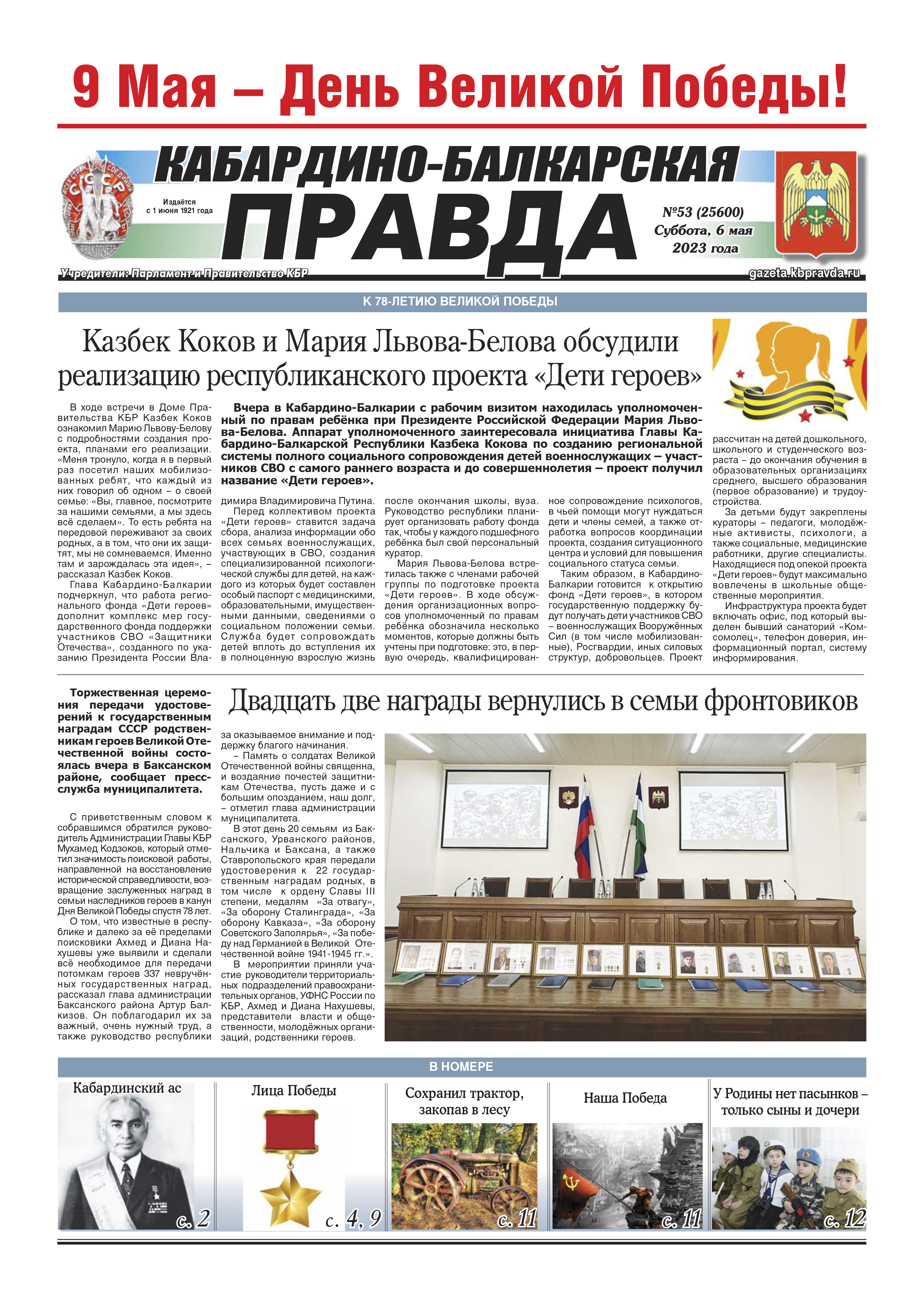 78 лет Великой Победе. Вышел праздничный номер газеты "Кабардино-Балкарская правда"