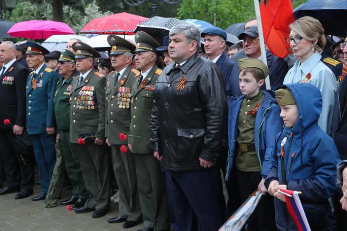 Обращаясь к собравшимся, Казбек Коков сказал: «Уважаемые друзья! Дорогие ветераны! Сегодня многонациональный народ нашей страны с чувством огромной гордости за свою Родину в едином душевном порыве отмечает праздник Великой Победы.