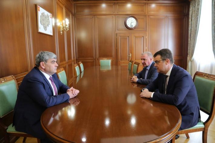 Состоялась рабочая встреча Главы КБР Казбека Кокова с генеральным директором Кавказ.РФ Андреем Юмшановым, который находится в республике с рабочим визитом. Обсуждались вопросы обновления курорта «Эльбрус» и привлечения инвестиций для его дальнейшего развития.