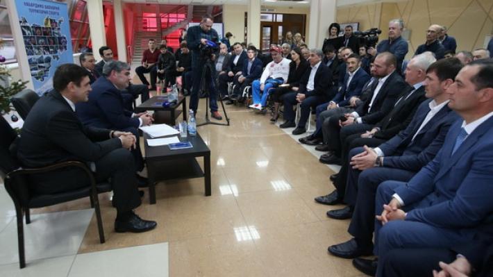 В ходе открытого диалога с выдающимися спортсменами, тренерами, директорами спортивных школ обсуждены актуальные вопросы развития спорта в Кабардино-Балкарии.