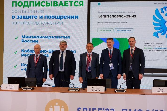 На площадке Петербургского международного экономического форума состоялось подписание трехстороннего Соглашения о защите и поощрении капиталовложений (СЗПК) между Министерством экономического развития Российской Федерации, Министерством экономического развития Кабардино-Балкарской Республики и обществом с ограниченной ответственностью «Чегем Агро».