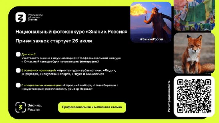 У профессиональных фотохудожников и любителей мобильной съёмки появилась ещё одна возможность громко заявить о себе. Объявлен приём заявок на фотоконкурс «Знание. Россия», организованный Российским обществом «Знание».