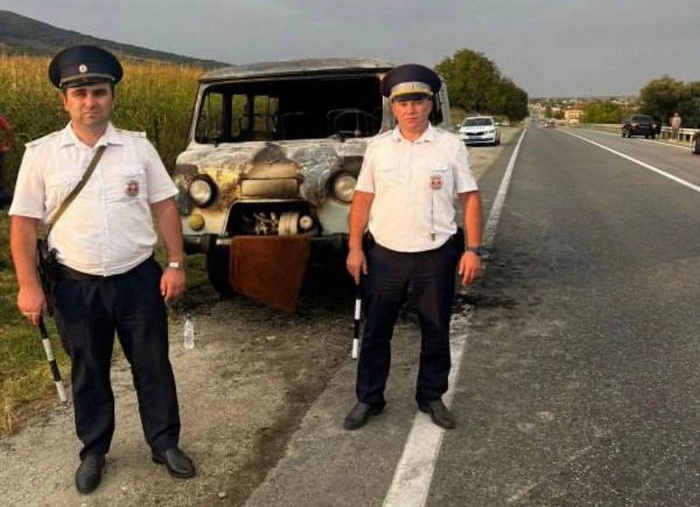 Так, в ходе несения службы сотрудники дорожно-патрульной службы отделения Госавтоинспекции ОМВД России по Черекскому району Азамат Курашев и Заур Губжев обратили внимание на стоящий на обочине автомобиль «УАЗ», из-под которого шел дым.