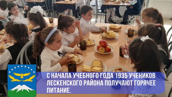 С начала учебного года 1935 учеников района получают горячее питание. Оно предоставляется учащимся 1-4 классов, а также ученикам, относящимся к льготной категории.