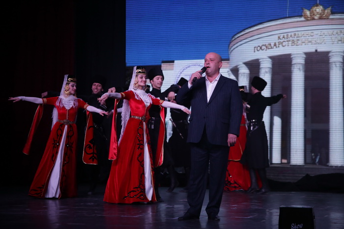В программу праздничного концерта, посвящённого дню образования КБГУ, вошли выступления театра танца «Каллисто», популярных певцов Черима Нахушева и Алима Газаева, государственного академического ансамбля танца «Кабардинка», государственного фольклорно-этнографического ансамбля танца «Балкария», образцового детского коллектива ансамбля современного эстрадного танца «Арабеск».
