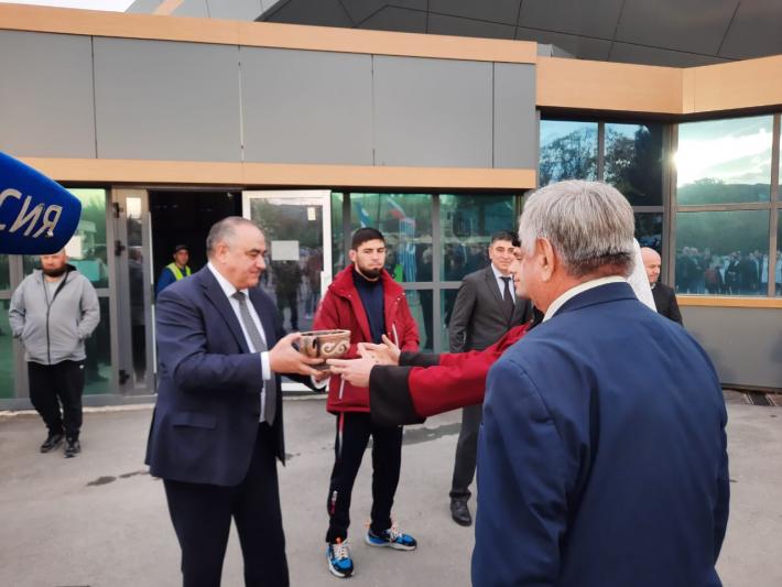Встречали чемпиона члены Правительства КБР, представители спортивной общественности республики и многочисленные земляки-терчане, включая членов рода Шериевых.