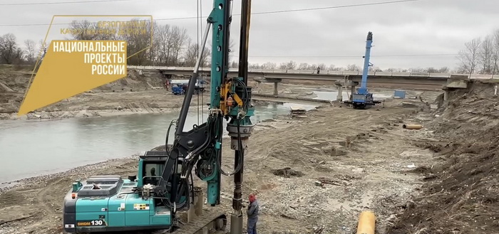 Специалистами подрядной организации в настоящий момент устраиваются буронабивные сваи и заливаются монолитным бетоном подферменные площадки. Далее на мосту будут выполнены работы по замене основных конструктивных элементов искусственного сооружения, устройству асфальтобетонного покрытия, тротуаров и обустройству участка разметкой, знаками и ограждением.