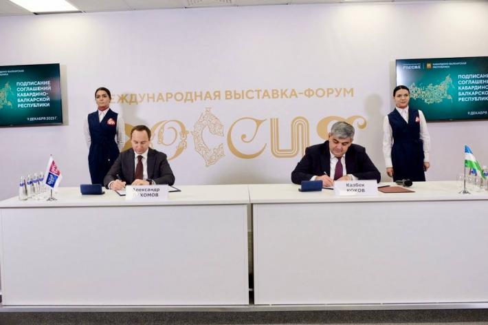 Подписано соглашение Кабардино-Балкарии с Почта-банком![]() В День Кабардино-Балкарии на Международной выставке-форуме «Россия Глава республики Казбек Коков провёл встречу с президентом – председателем правления АО «Почта Банк» Александром Пахомовым. Подписано соглашение о сотрудничестве, которое предусматривает дальнейшее развитие и внедрение в Кабардино-Балкарской Республике современных банковских технологий и инфраструктуры, в том числе дальнейшее развитие «Пушкинской карты», программ повышения финансовой грамотности жителей республики, а также реализацию социально значимых проектов.