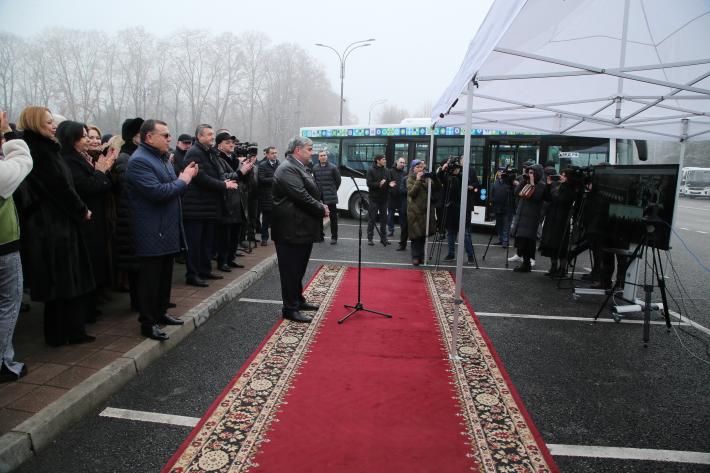 Вы знаете, что были обращения в том числе на «прямую линию», которые касались обеспечения транспортом маршрутов, обслуживающих точки, такие, как Белая речка, Кенже, Хасанья, Александровка. И сегодня благодаря полученному транспорту будем обеспечивать все маршруты. Важно и то, что автобусы комфортабельные – они низкопольные и оборудованы системой кондиционирования. Кроме того, для пассажиров дополнительные удобства создаст система контроля, благодаря ей транспорт сможет отслеживать не только компания, но и пассажиры, которые с помощью мобильного телефона смогут узнать, когда приходит нужный им автобус. И, конечно же, важны дополнительные рабочие места».