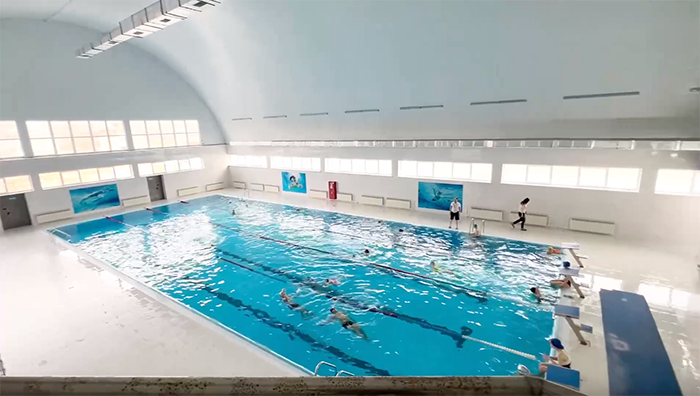 Это крупное сооружение: на площади более 5,5 тысячи квадратных метров есть бассейн, залы для борьбы, бокса, аэробики, художественной гимнастики, командных игр, тренажерный зал.