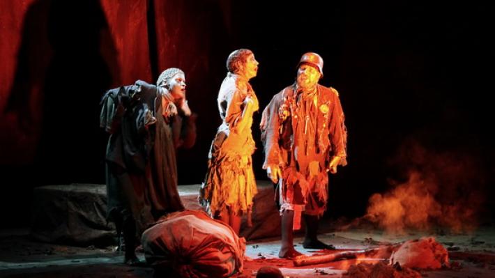 «Зверь» - это жуткое повествование о постядерном мире, населённом примерно вторым-третьим поколением остатков человечества. Даже не остатков, а останков, поскольку количество «венцов творения» исчисляется хорошо, если десятками. Впрочем, тут возможны варианты – однозначных ответов сюжет не предоставляет, а публике думать над деталями особо некогда: спектакль держит так, что головы не повернуть. Ещё выжили почему-то барсуки. Но это не точно. Возможно, это кто-то, просто на них похожий. Прочие упоминаемые по ходу существа то ли есть, то ли нет. Лучше, если нет.