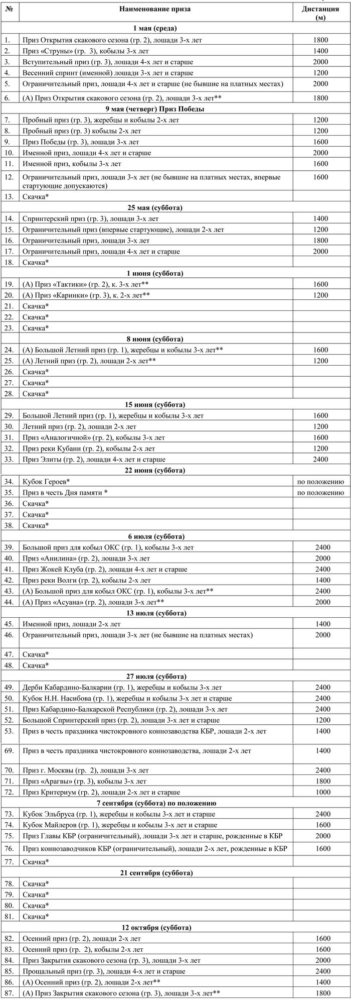 Календарь испытаний племенных лошадей верховых пород на Нальчикском ипподроме в 2024 году