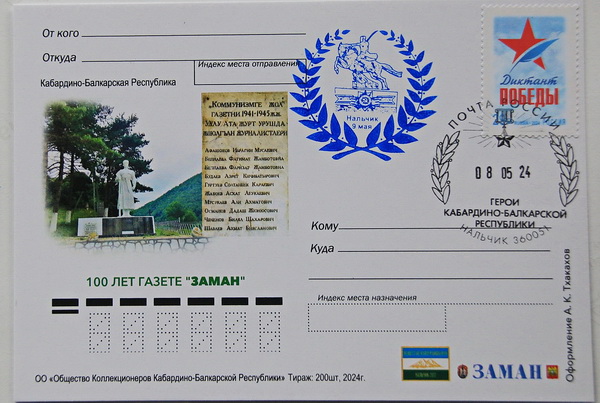 Республиканское общество коллекционеров выпустило почтовые карточки, посвящённые 100-летию двух республиканских газет: «Адыгэ псалъэ» и «Заман», приуроченные к 79-й годовщине Великой Победы.