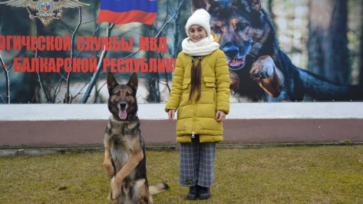 Путешествие продолжилось: в центре кинологической службы гостье показали вольеры со служебными собаками, которые продемонстрировали выполнение различных команд. В завершение встречи руководитель центра Владимир Жилов от всего коллектива вручил девочке подарки.