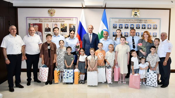 Мероприятие продолжилось в актовом зале МВД по КБР, где руководители ведомства, председатели общественного совета при МВД по КБР и Совета ветеранов поздравили многодетные семьи действующих сотрудников ведомства.