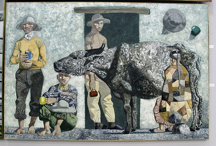 Удивителен масштаб и архитектоника форм многочисленных композиций, составивших монументальные живописные триптихи, сила и плотность их материала, подобного камню. Экспозиции, которую составили около ста произведений, объективно тесно в просторных залах. А вкупе с тематикой, говорящей о родной земле языком мифов, реальных исторических событий и образов, массив полотен воспринимается горой, внезапно возникшей посреди здания Национального музея. Как будто герои, вдохновившие художника, вот-вот освоят для жизни оставшееся незатронутым пространство потолка. Многочисленные женские образы, составляющие «Анэ», собирают прототип не только конкретной земной женщины – мамы художника, они убедительно рассказывают о вселенском масштабе прародительницы человечества. В какой-то момент останавливается поток понятийного мышления и остаётся общее осознание происходящего, которое больше радости и печали, масштабнее эмоций и рассуждений.