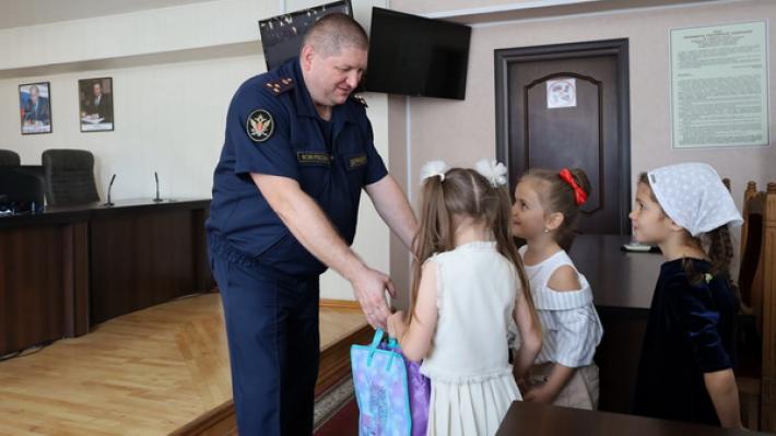 Начальник УФСИН России по КБР Александр Демидов поздравил детей сотрудников с новым учебным годом и вручил школьные наборы. Ребята этой осенью пойдут в первый класс, акция приурочена к Году семьи.
