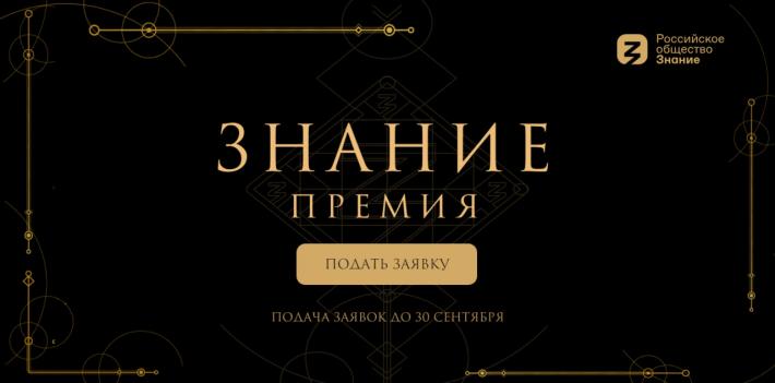 До 30 сентября 2024 года открыта подача заявок на главную просветительскую награду России – Знание.Премия, учрежденная Российским обществом «Знание». Подать заявку можно на сайте https://award.znanierussia.ru/. Эта награда создана для признания выдающихся достижений деятелей образования, науки и культуры, а также для поддержки просветительских проектов и инициатив.