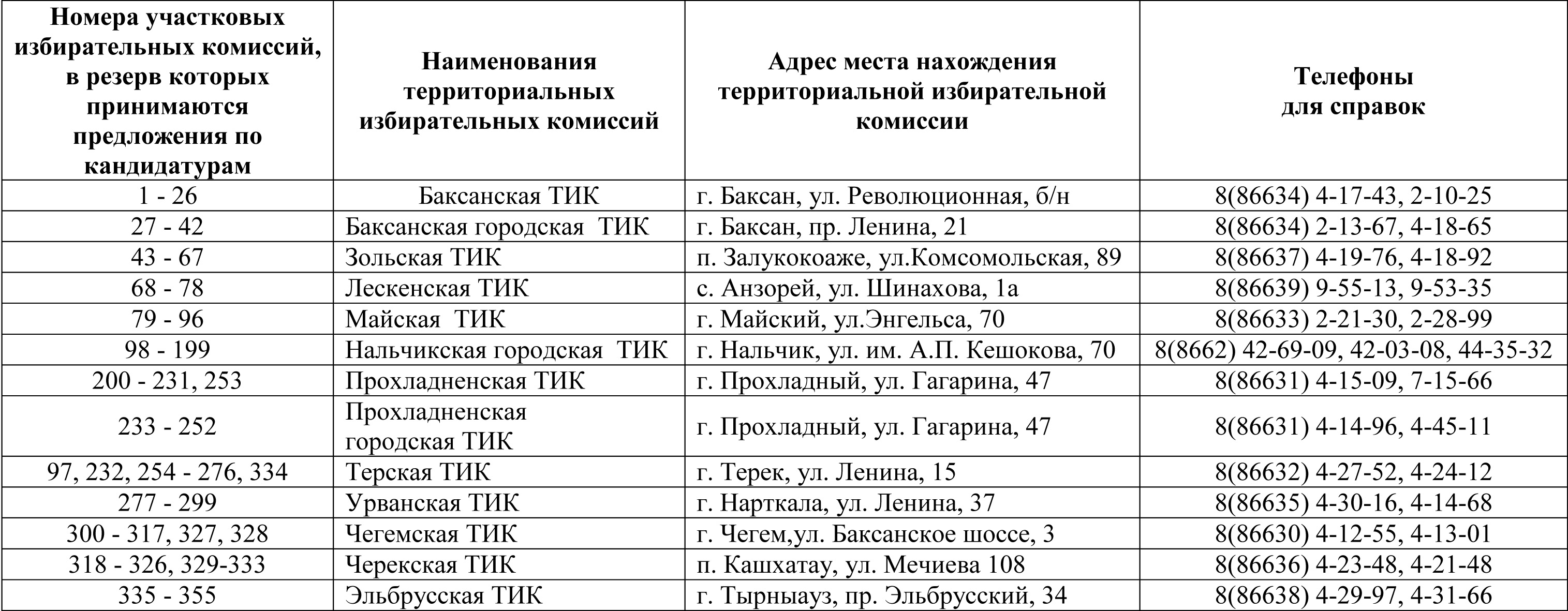 Избирательная комиссия Кабардино-Балкарской Республики объявляет прием предложений по кандидатурам для дополнительного зачисления в резерв составов участковых избирательных комиссий.