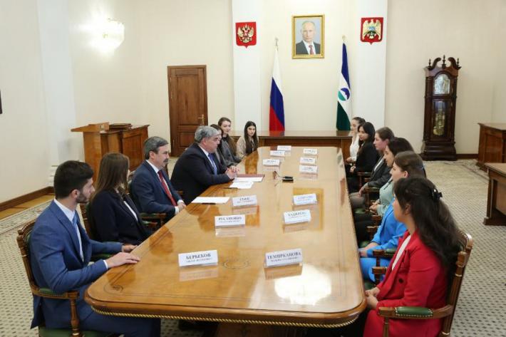На встречу были приглашены лауреаты и победители федеральных и региональных профессиональных конкурсов — Кристина Алакаева, Жамилят Бапинаева, Эльдар Бербеков, Фатима Далова, Диана Думанова, Елена Мамаева, Виктория Ларикова, Юлия Лысько, Динара Ордокова, Оксана Русаненко, Марьяна Темирканова, Мариам Хаджиева.