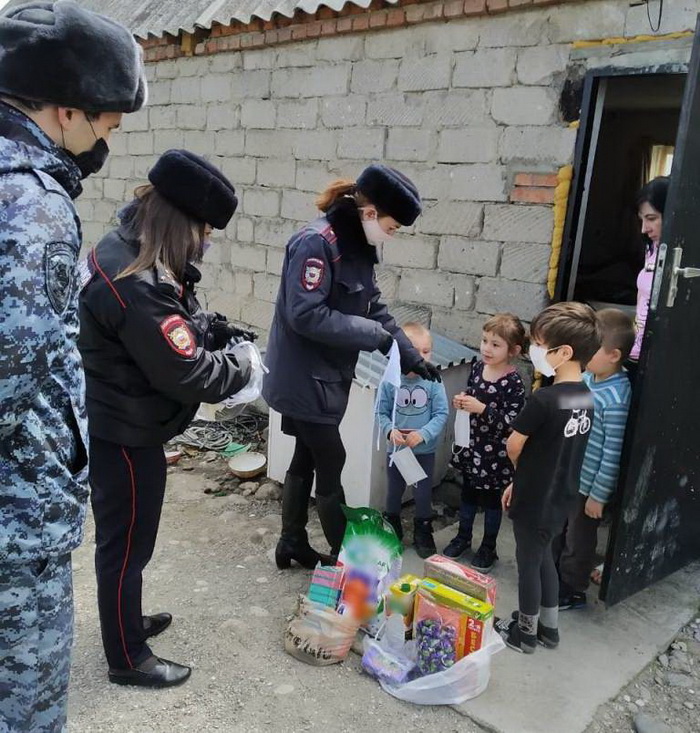 Полицейские, соблюдая меры предосторожности, проведали семьи, оказали им помощь в виде продуктов питания, бытовой химии, чистящих средств, медицинских масок, перчаток и дезинфицирующих средств, сообщили в пресс-службе МВД по КБР.