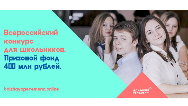 АНО «Россия – страна возможностей», проект «ПроеКТОриЯ», «Роспатриотцентр» и Российское движение школьников при поддержке Министерства просвещения РФ анонсировали всероссийский конкурс «Большая перемена».