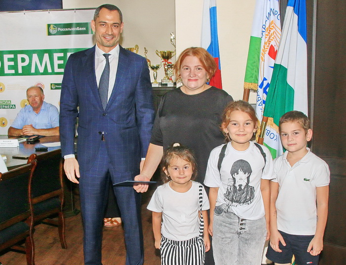 Алим Сокуров и выпускница 2-го потока "Школы фермера" Залина Мамхегова с детьми