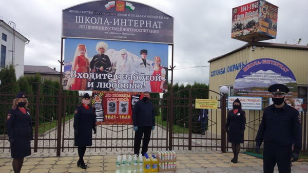Сотрудники отдела МВД России по Чегемскому району посетили подшефную нартановскую школу-интернат для детей-сирот и детей, оставшихся без попечения родителей, №5 Министерства просвещения, науки и по делам молодёжи КБР. Полицейские передали работникам интерната бытовые чистящие средства для гигиены и дезинфекции помещений школы.
