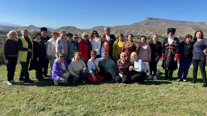 Участники проекта «Старость меня дома не застанет» Общественной палаты КБР под руководством председателя комиссии по социальной политике, здравоохранению, физической культуре и спорту Натальи Шинкарёвой побывали в станице Красногорской Усть-Джегутинского района Карачаево-Черкесии на этнокультурном фестивале «Кавказский рубеж».