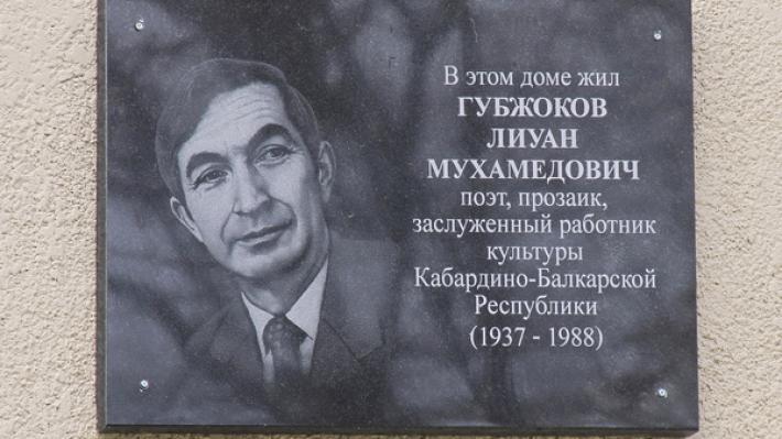 Мемориальная доска размещена на доме № 25 на улице Байсултанова в столице Кабардино-Балкарии, где жил и создавал бессмертные произведения, размышлял о Родине и людях, трудился над переводами Лиуан Губжоков.