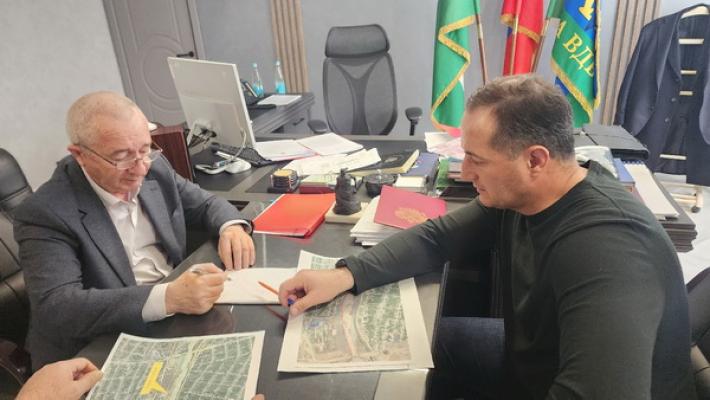 Глава местной администрации городского округа Баксан Хачим Мамхегов провёл рабочую встречу с генеральным директором ООО «НИИ Проект Строй» Сафаром Хапаевым и со своим заместителем по вопросам жизнеобеспечения и безопасности Назиром Кардановым.
